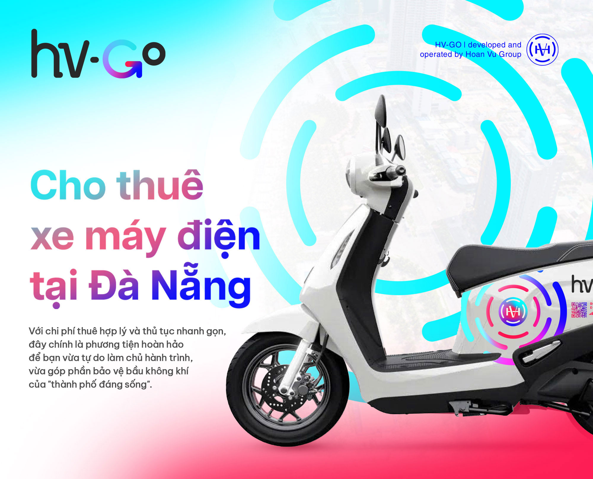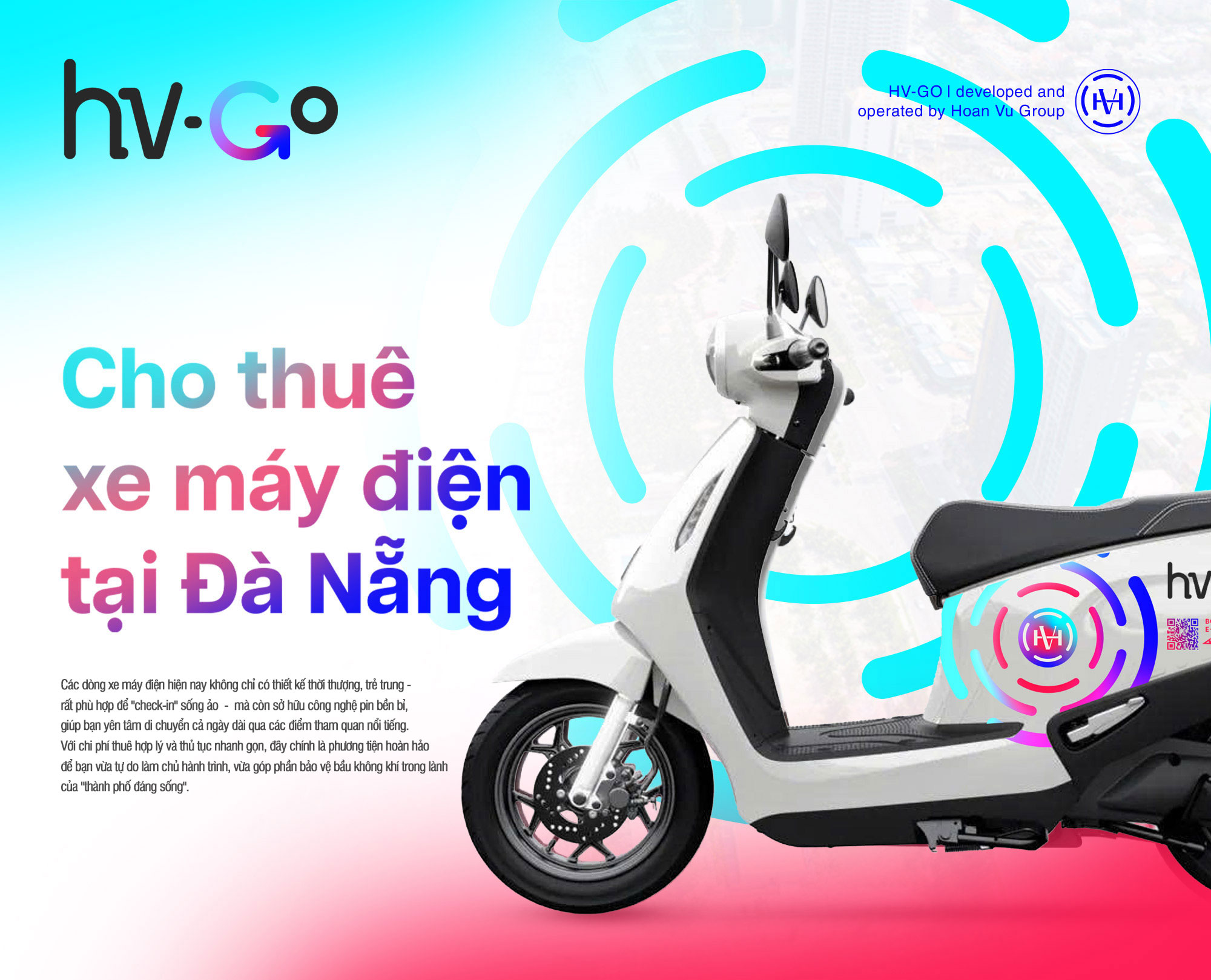 Dịch vụ cho thuê xe máy điện HV-GO chuyên nghiệp tại thành phố Đà Nẵng. Việc lái xe máy điện khi đi du lịch Đà Nẵng sẽ giúp bạn chủ động hơn trong việc di chuyển cũng như tận hưởng bầu không khí trong lành, thoáng mát của